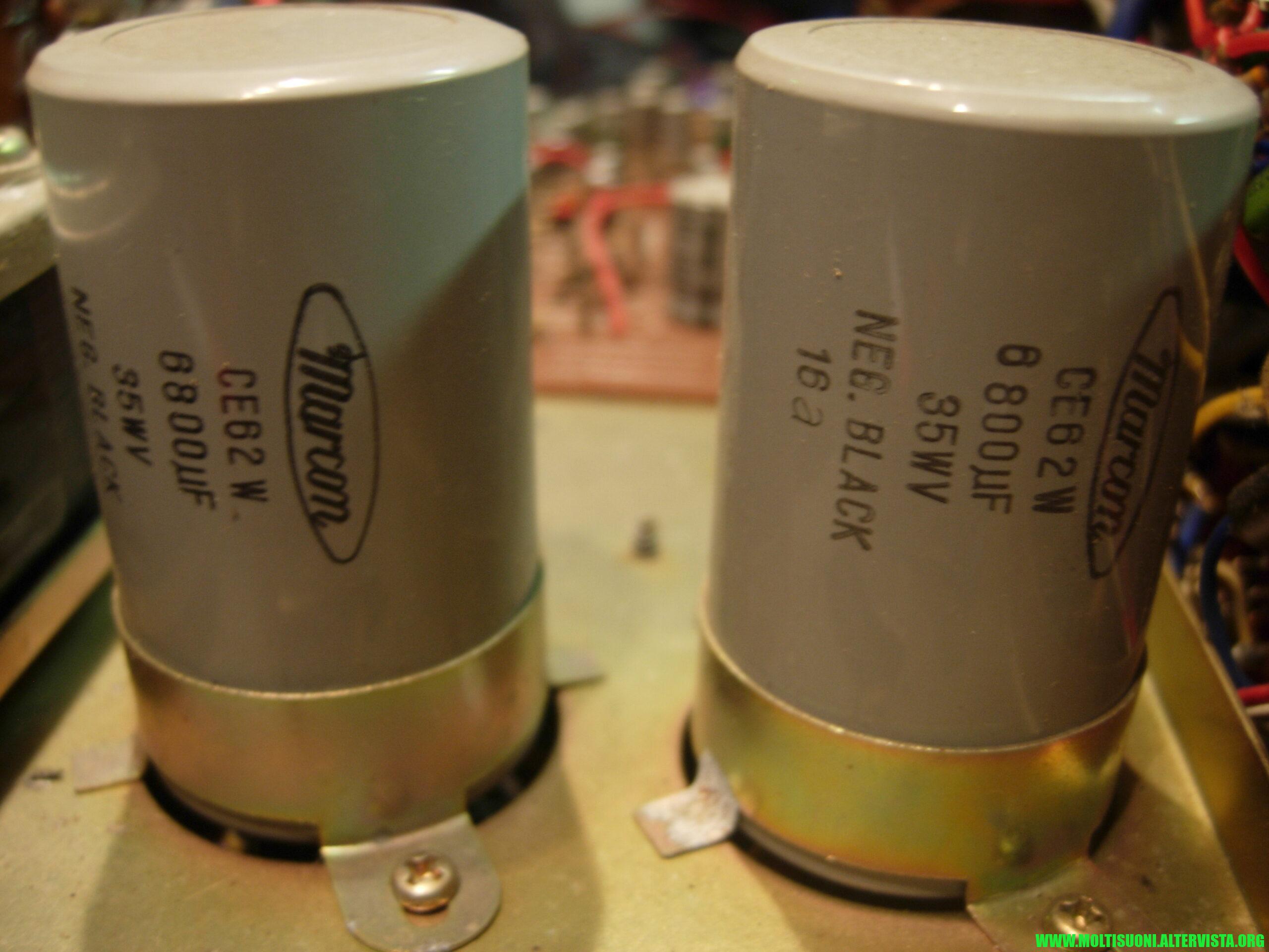 L’amplificazione può contare su una capacità totale (in origine) di 10.000uF , taglio grossomodo corretto per la potenza erogata.